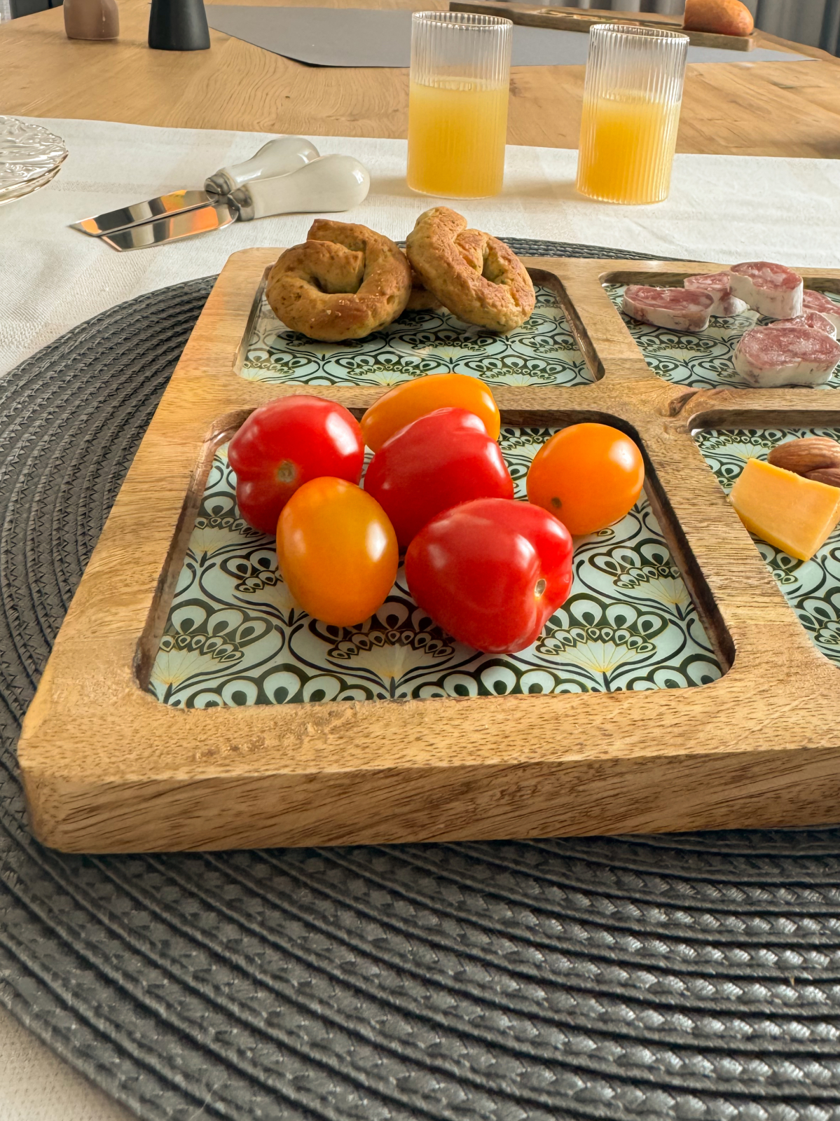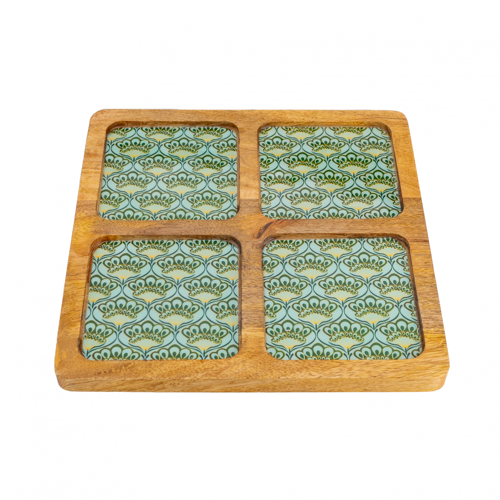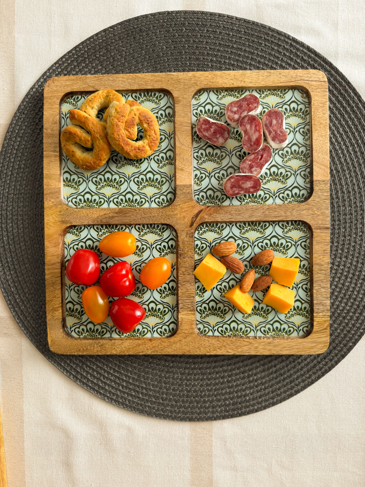 Platou din lemn de mango cu 4 compartimente Emerald 22.5 x 22.5 cm