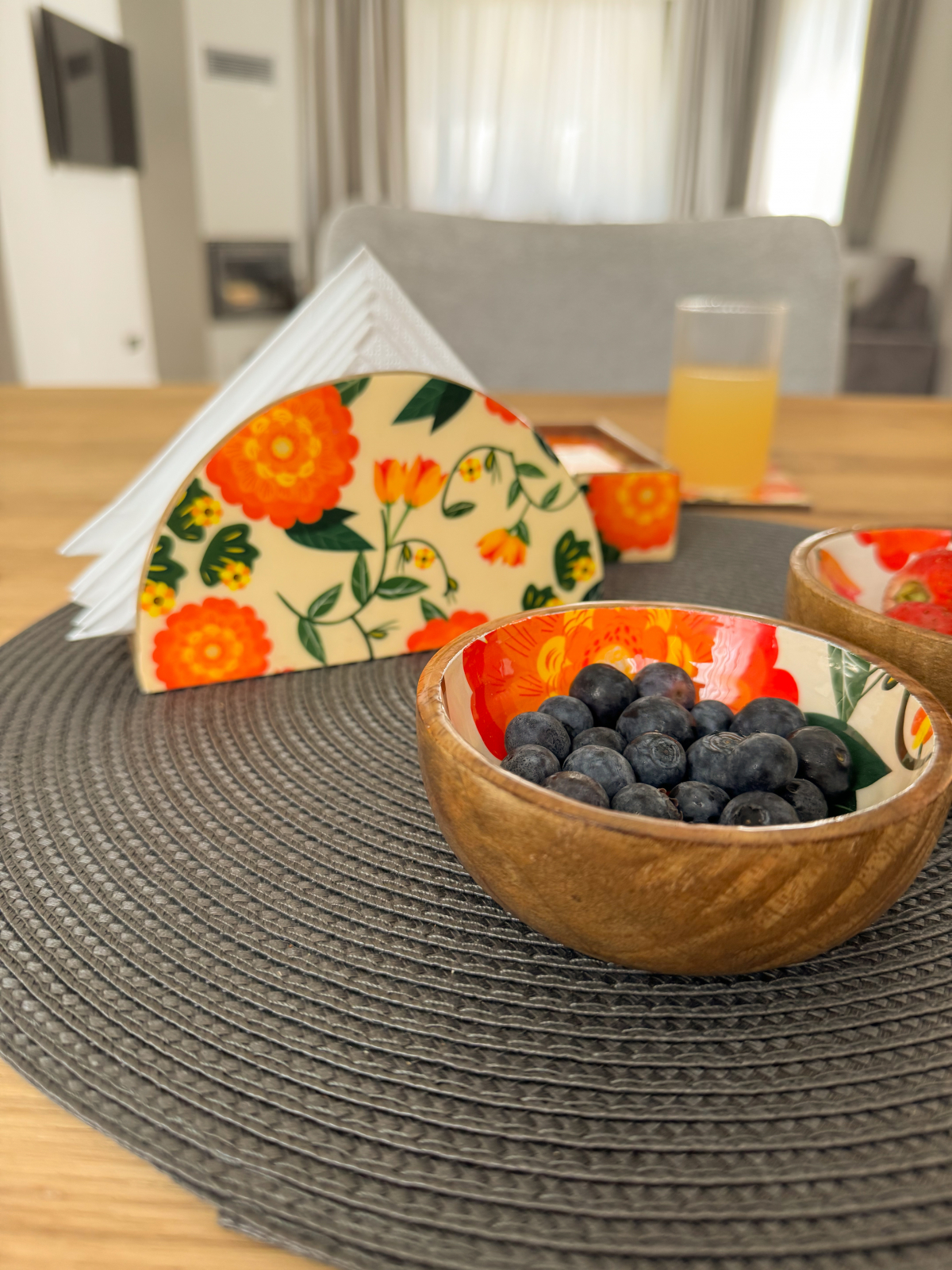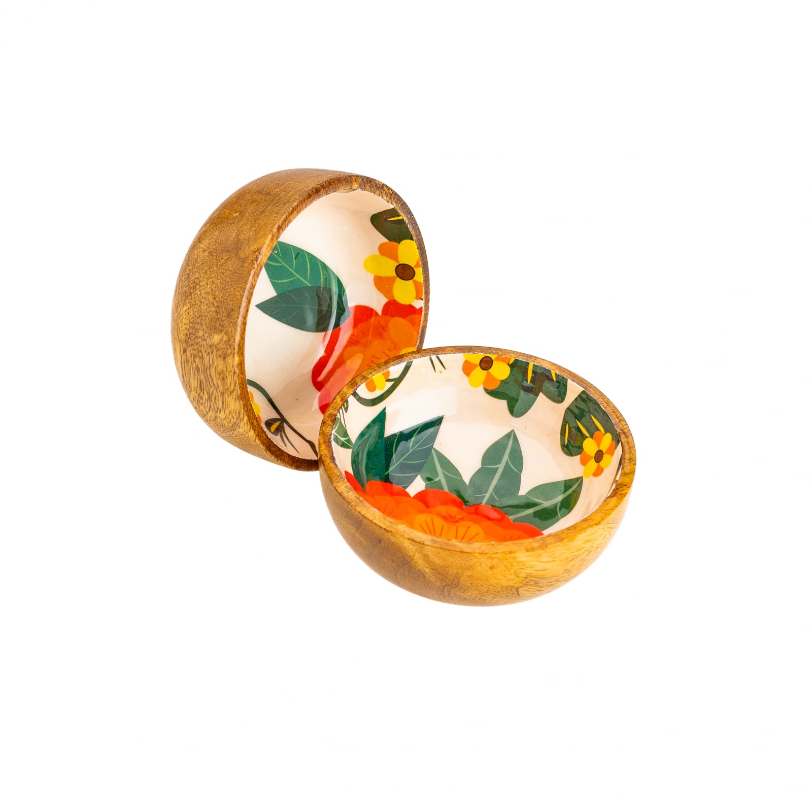 Setul de 2 boluri de servire din lemn de mango este alegerea perfecta pentru a aduce o nota de eleganta naturala la masa ta. Designul este imbogatit cu un model colorat distinct si finis emailat, aducând un plus de rafinament si stil.
