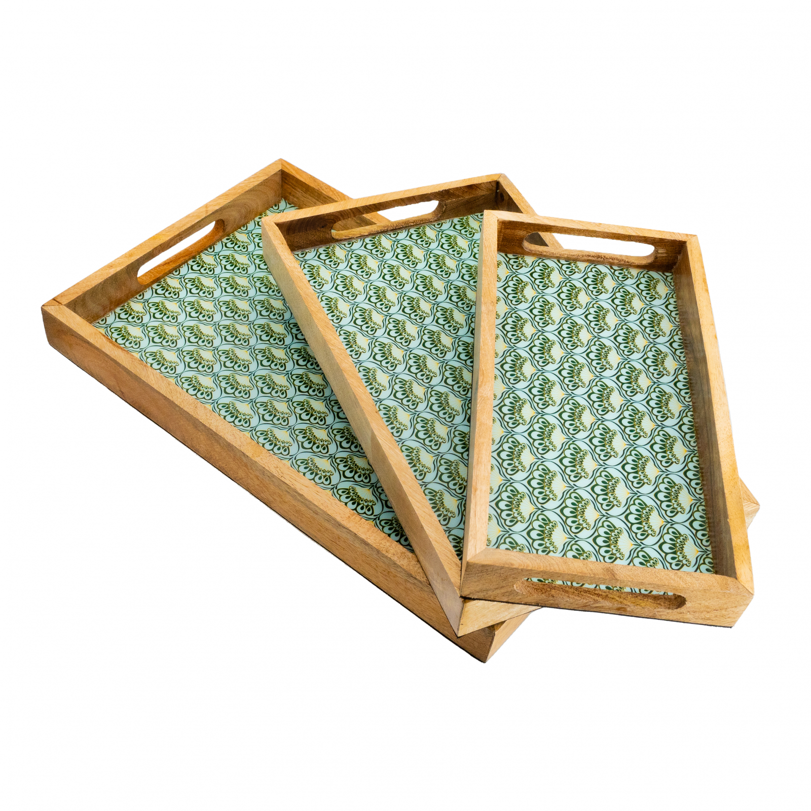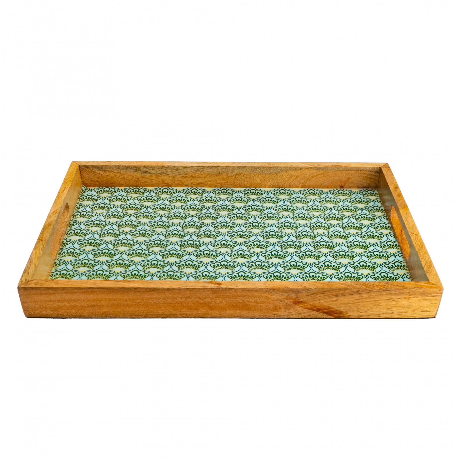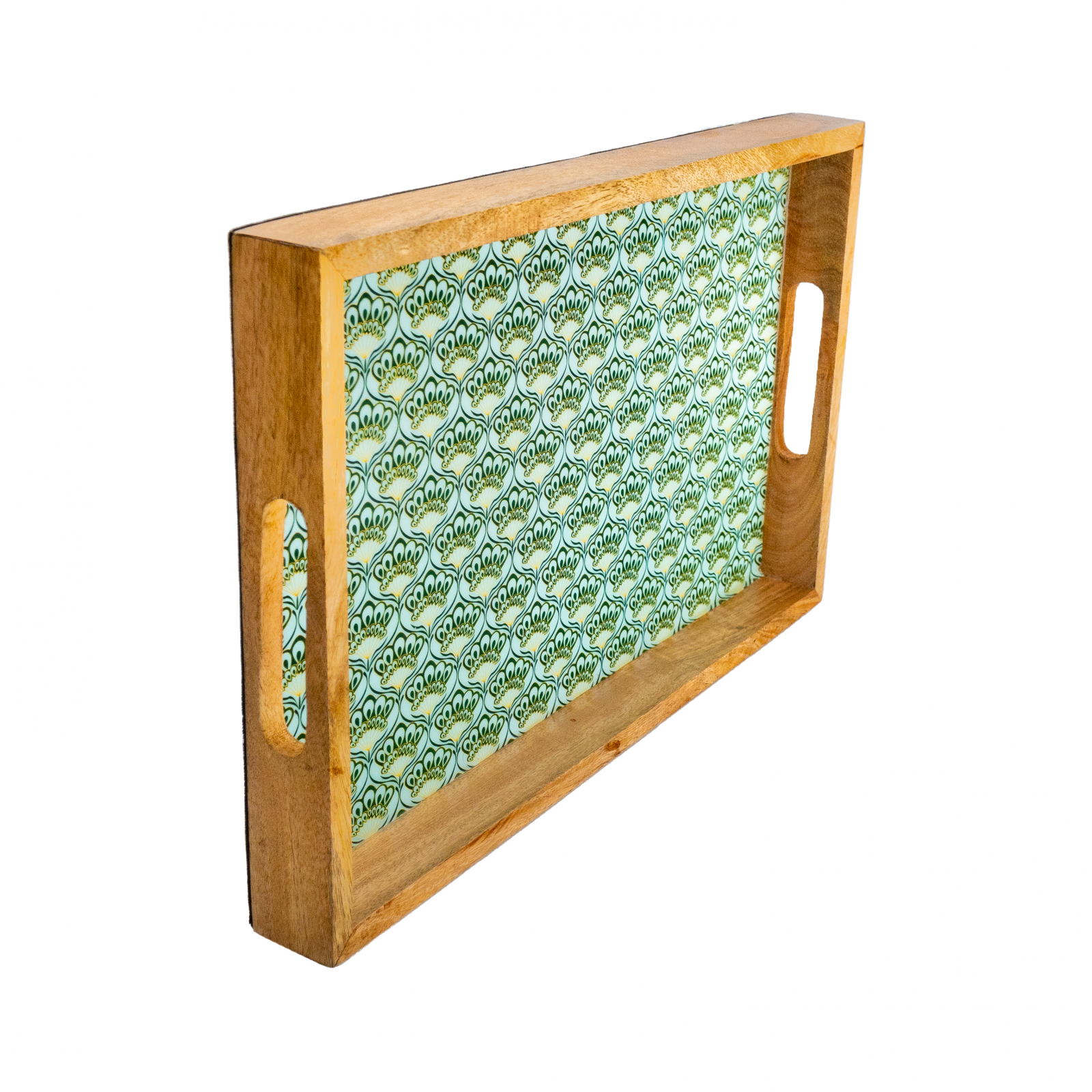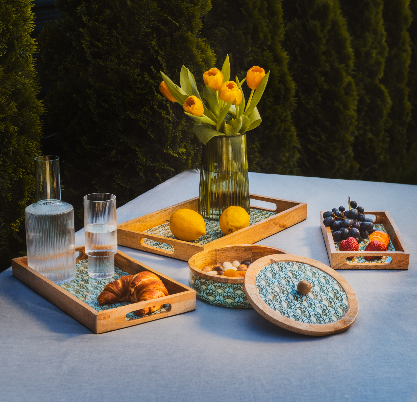 Lemnul de mango, cunoscut pentru duritatea si aspectul sau distinct, confera acestei tavi o textura bogata si o nuanta calda. Modelul colorat cu un finis emailat adauga un plus de rafinament, creând o piesa de accent perfecta pentru orice decor.