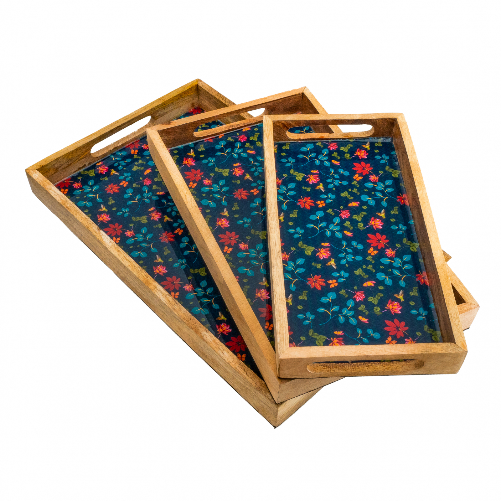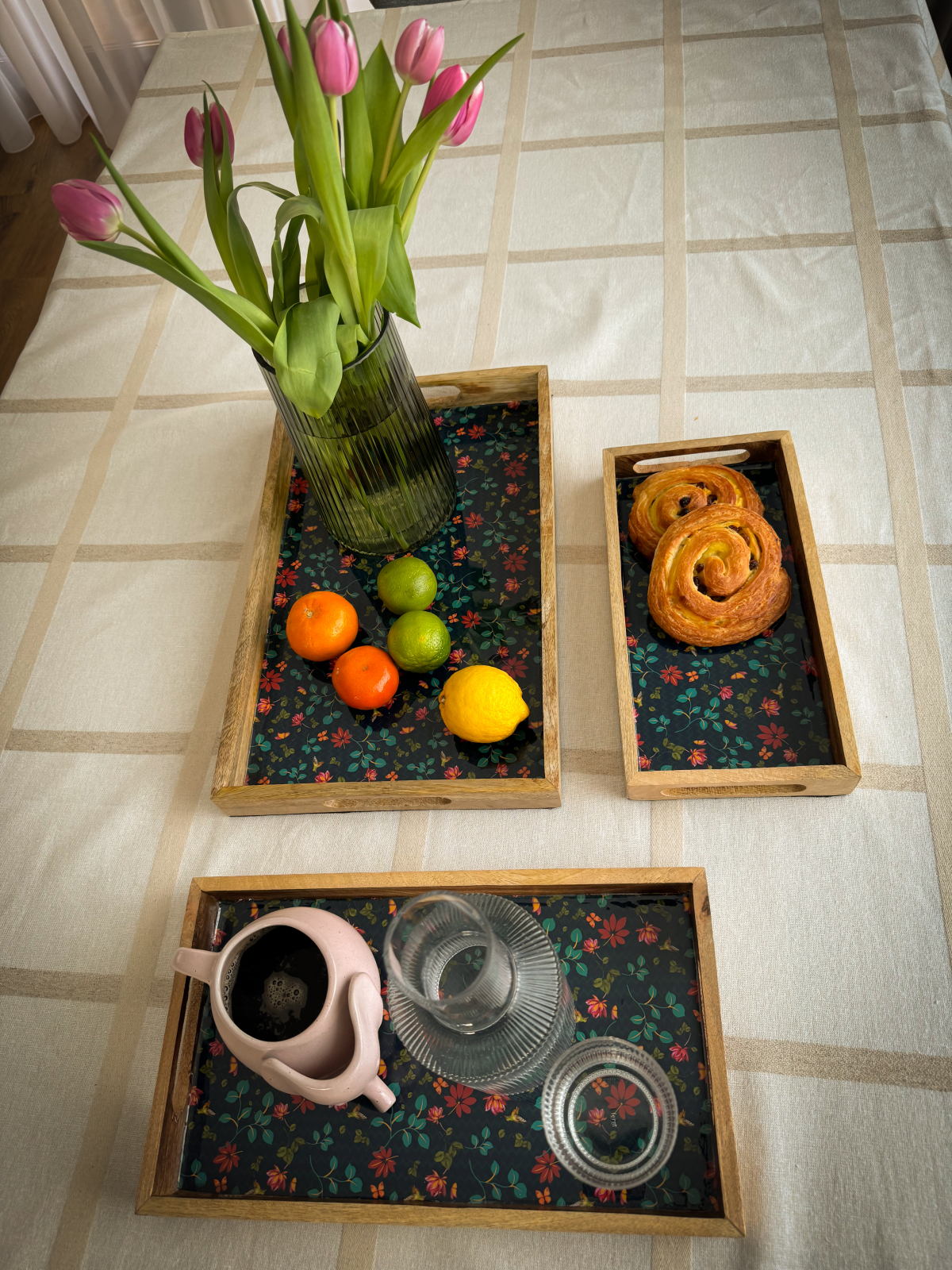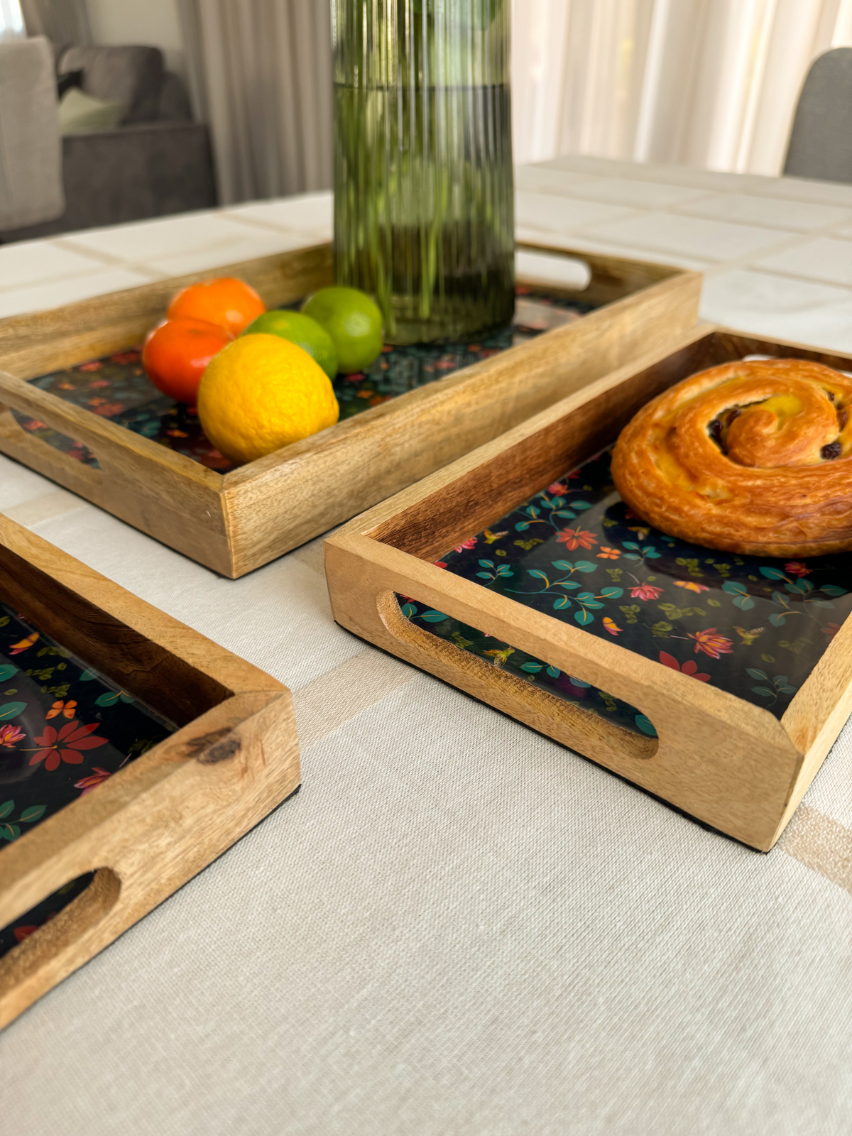 Lemnul de mango, cunoscut pentru duritatea si aspectul sau distinct, confera acestei tavi o textura bogata si o nuanta calda. Modelul colorat cu un finis emailat adauga un plus de rafinament, creând o piesa de accent perfecta pentru orice decor.